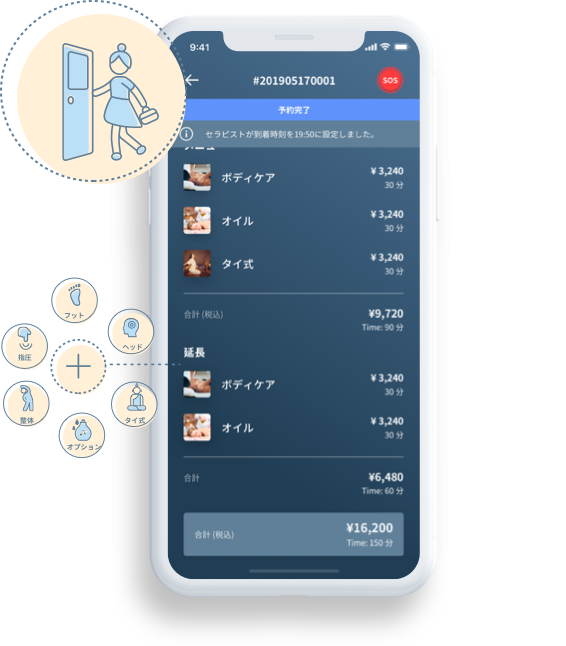 セラピストがあなたの元へ。施術メニューの追加や延長も可能です。
