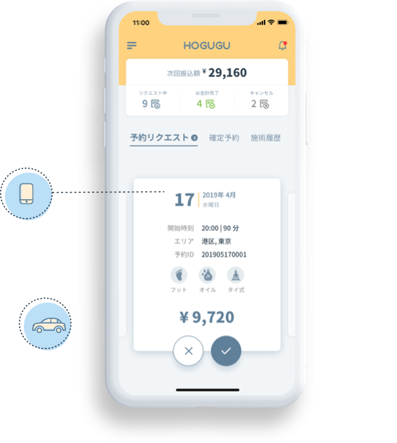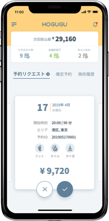 アプリ運営費として施術料金の25%を頂戴しております。
