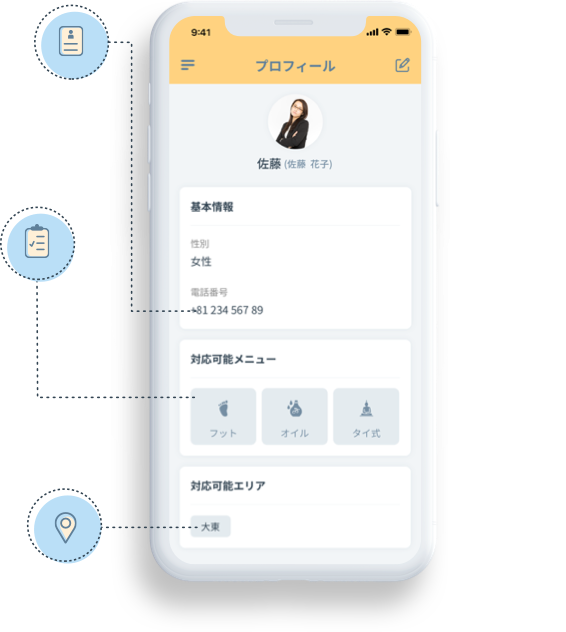 施術歴や対応可能エリアを登録しましょう。